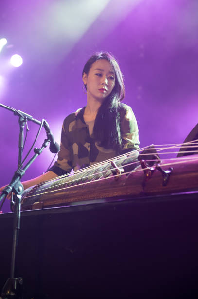 Da sinistra a destra: (1) GEOMUNGO:cetra a pizzico con ponti e tasti. Suonato da Sim Eun-yong. (2) HAEGEUM strumento a corda, simile a un violino verticale con due corde. Suonato da Kim Bo-mi. (3) PIRI strumento ad ancia doppia. Suonato da Lee Il-woo. (Photos by Lionel FLUSIN/Gamma-Rapho via Getty Images)
